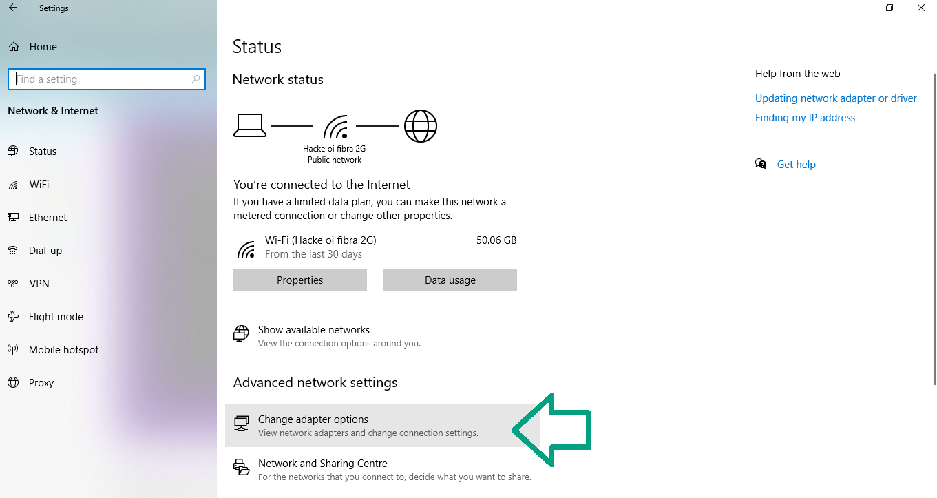 Em seguida, clique em “Rede e Internet” e selecione “Alterar opções de adaptador”.