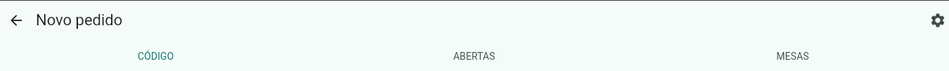 Na tela seguinte você pode escolher a aba "Código" para digitar o número de uma comanda ou aproximar um cartão caso o Mifare esteja habilitado, pode clicar em "Abertas" para selecionar uma conta que já esta aberta ou clicar em "Mesas" para lançar o pedido em uma mesa pré cadastrada.