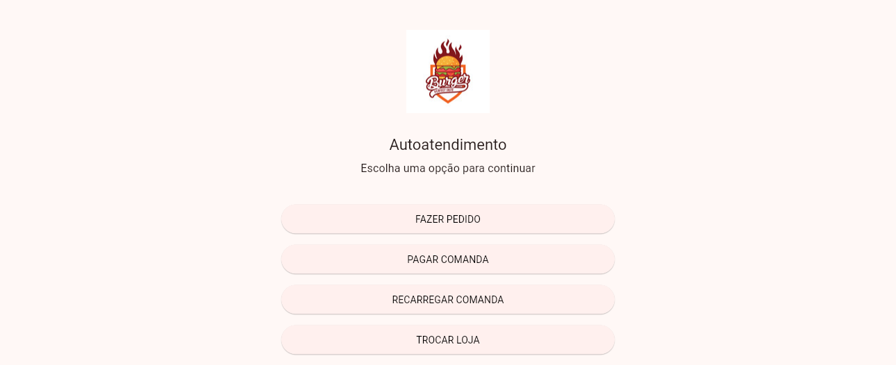 Quando o seu cliente acessa o autoatendimento ele tem as seguintes opções: Fazer Pedido = Utilizado para que o cliente consiga selecionar os itens que deseja, realizar o pagamento e imprimir o pedido.