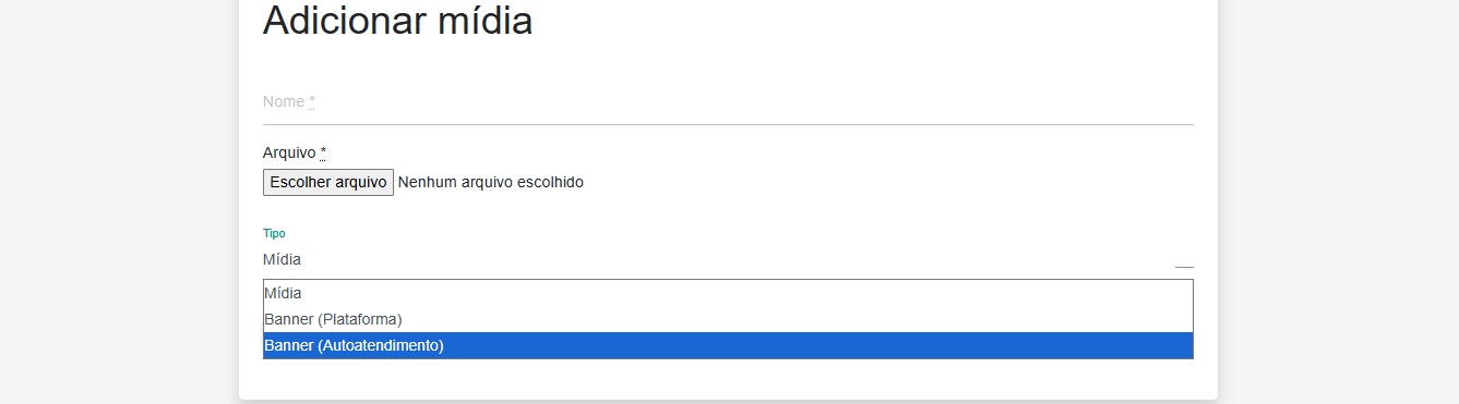 Clique em "Escolher arquivo" > Depois, selecione o tipo de mídia "Banner (Autoatendimento)".